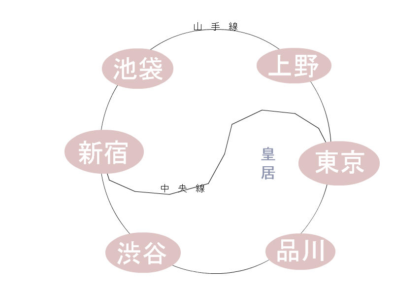 »³¼êÀþ¤Î¼çÍ×6±Ø¤¬¤É¤³¤Ë°ÌÃÖ¤·¤Æ¤¤¤ë¤«¤ò´Êά¿Þ¤Ë¤·¤¿¤â¤Î¤Ç¤¹¡£